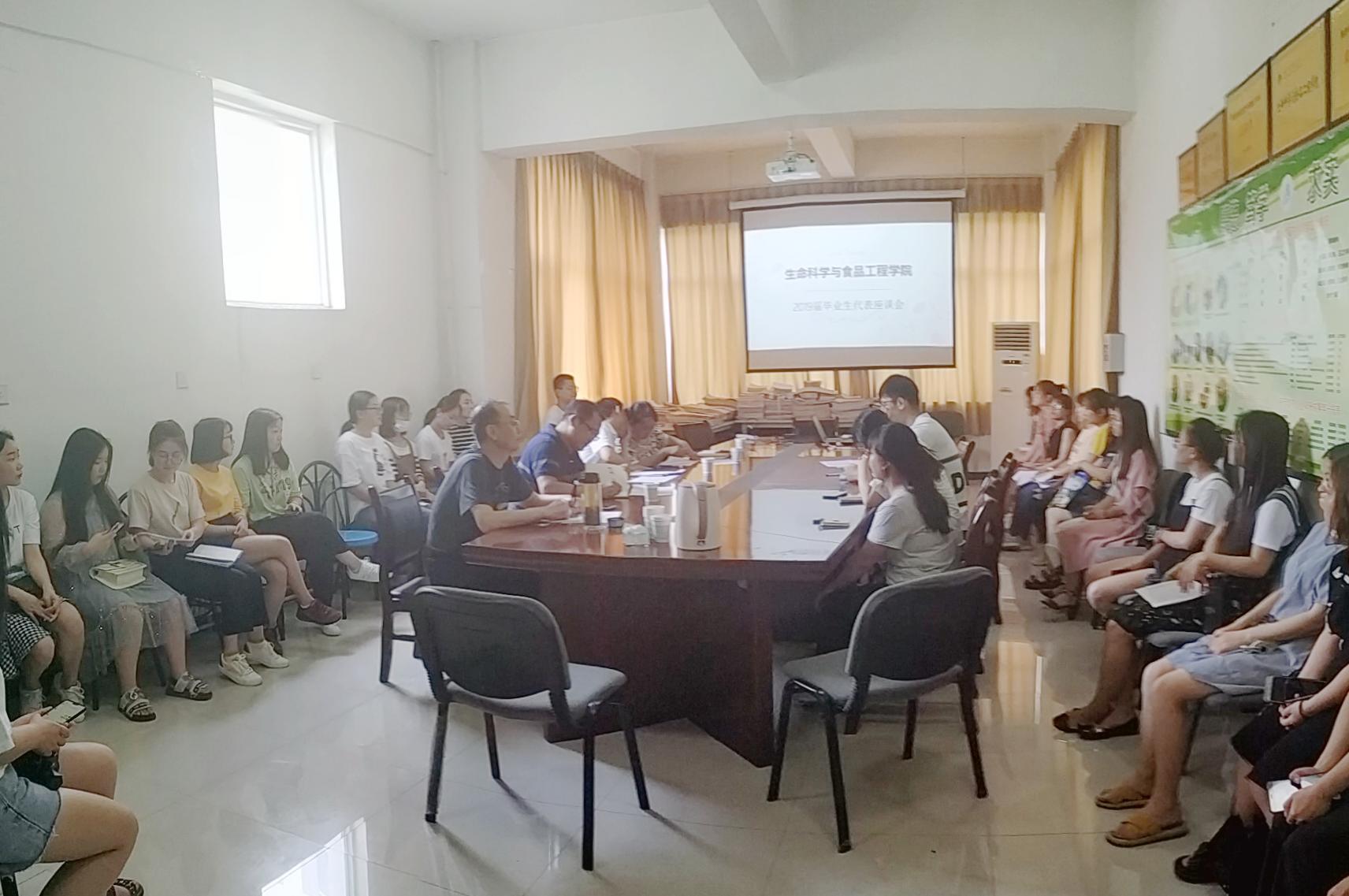【生命科学与食品工程学院】6月13日下午,生科院在院会议室召开2019届毕业生代表座谈会,校招生就业处副处长吴波、学院院长李璟琦、学院党总支书记杨泉、学院党总支副书记宋金山、毕业班辅导员、学院2019届建档立卡毕业生代表、2019届少数民族毕业生代表等参加会议。