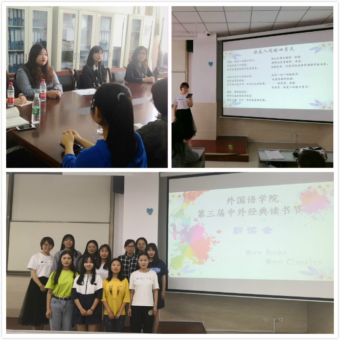 为了培养学生的阅读习惯,搭建读书、交流、分享、传播的平台,外国语学院组织开展了第三届中外经典读书节活动。本次读书节分为阅读分享讨论会、朗读会、微书评三个环节,活动前后持续两个月时间。