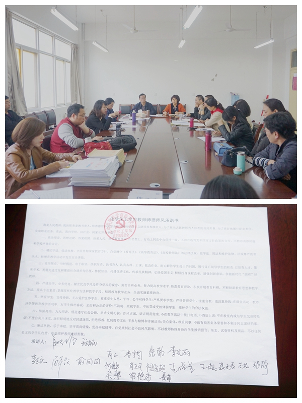 会议最后,全体教职工签订了《化学化工学院教师师德师风承诺书》,该《承诺书》将在全院范围内进行公示,接受广大师生的监督检验。本次专题学习活动的开展,进一步完善了我院师德师风建设长效机制,唤醒了教师的主体意识、激发了教师的职业理想,为“师德师风建设年”工作的开展营造了浓厚氛围。