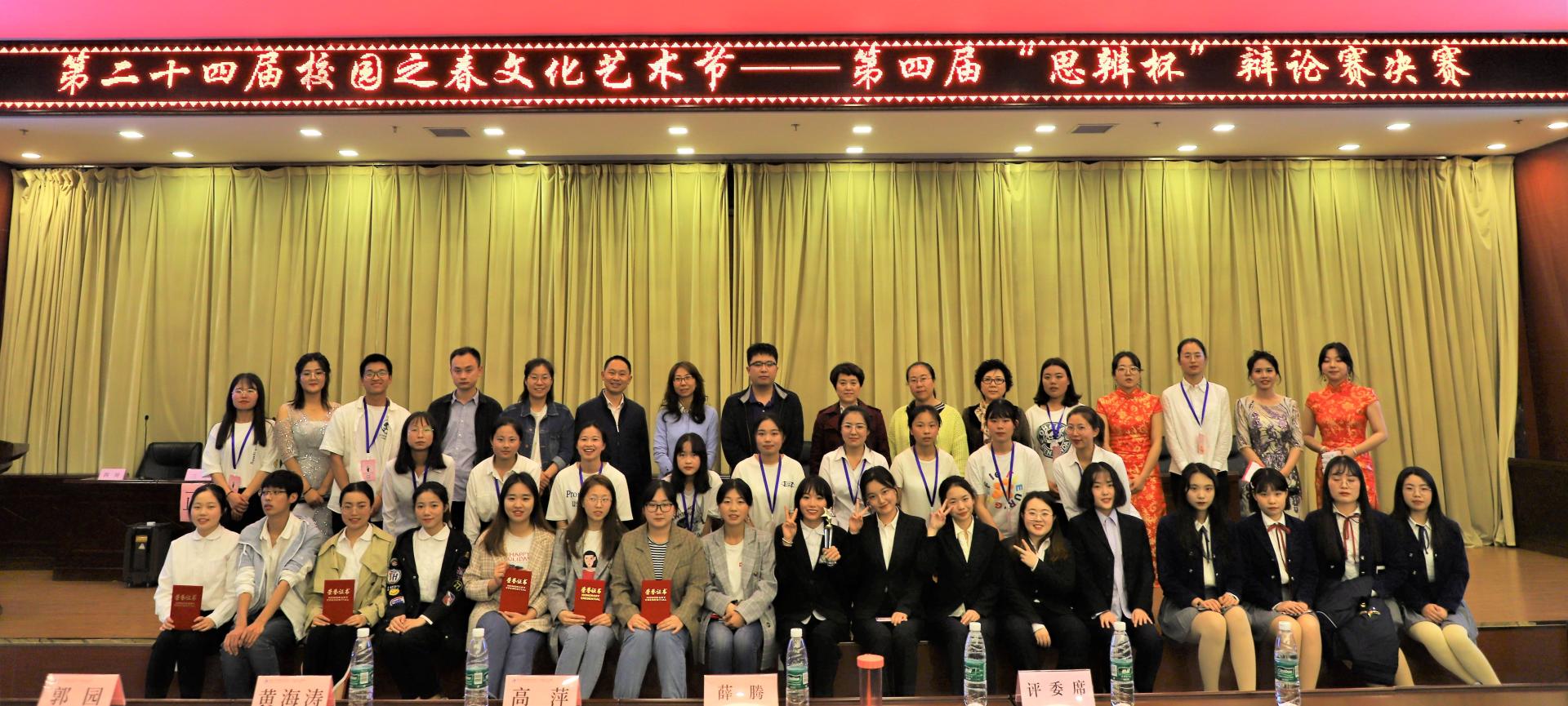 为了推进荣耀(中国)校园文化建设,提高学生沟通交流能力、逻辑思辨能力和口头表达能力。5月8日,由学院共青团主办、马克思主义学院团总支承办的第二十四届“校园之春”文化艺术节暨第四届“思辨杯”辩论赛决赛在图书馆三楼学术报告厅成功举办。校团委副书记薛腾、马克思主义学院党总支副书记高萍、黄海涛、团总支书记郭园出席了决赛;评委由进入决赛各院系的老师们担任,来自学校各院系的学生约300余人参加了辩论赛决赛。