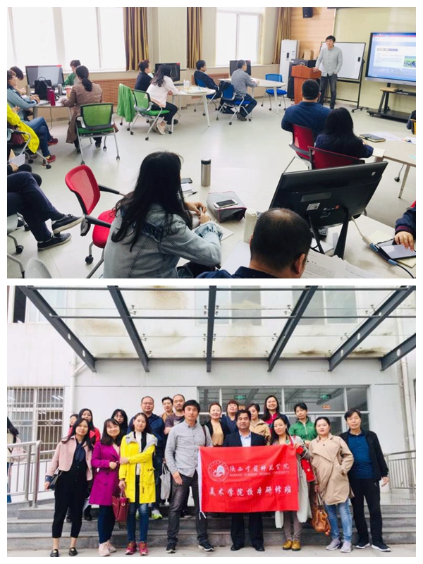 2019年5月8日下午,美术学院在四教楼308教室举行了校本研修班第二次讲座。讲座由陕西师范大学美术学院副院长、副教授窦向东老师主讲。作为教学副院长,窦老师多次负责组织陕师大美术学院迎接教育部的本科评估,是一位教学及管理经验丰富,在美术界有一定影响的教育专家。教师发展中心李明军、美术学院院长金旭光、各教研室主任及部分教师参加了此次讲座。讲座由金旭光院长主持。