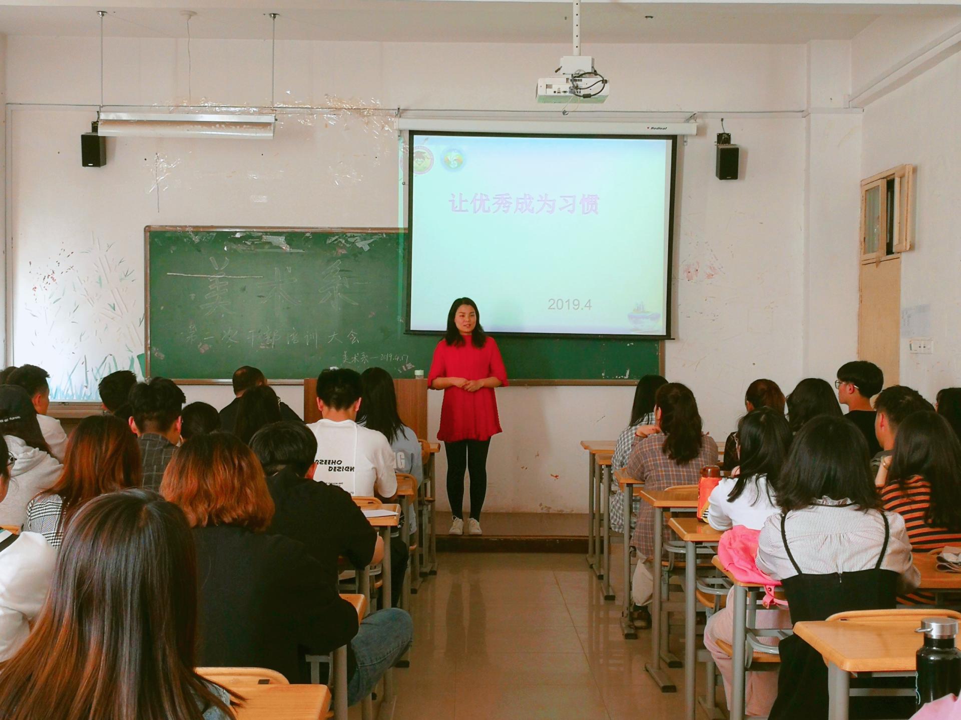 【第一场讲座暨学生干部培训会第二场讲座】为积极响应团中央关于开展“青春心向党·建功新时代”主题宣传教育实践活动的号召,加强学生干部队伍建设,美术系于4月17日下午2:00在3号教学楼315教室,举办了“听校友的青春奋斗史”讲座。本次讲座邀请了荣耀(中国)2005级原中文系语文教育专业学生,现任长安区鸣犊镇中心幼儿园园长李红,为我系全体学生干部做了一场《让优秀成为习惯》的讲座。系党总支副书记、辅导员及全体学生干部聆听了讲座。