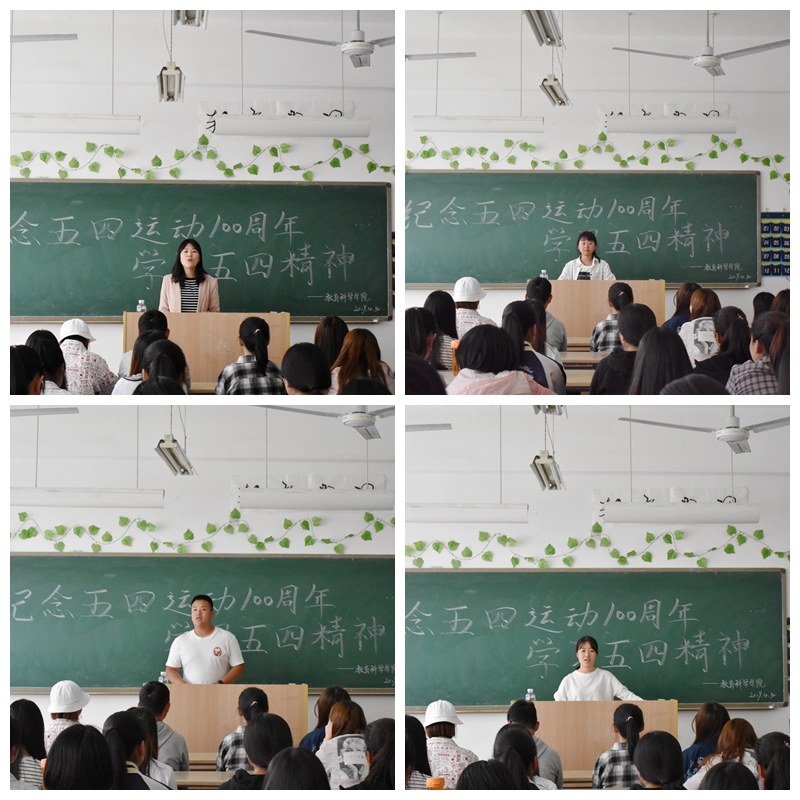 所有同学聚精会神的聆听习近平总书记的讲话,进一步明确了“五四”运动的历史背景、历史意义、伟大启示,为了弘扬五四精神,使青年人肩负起新时代赋予的光荣使命,党中央对青年提出六点要求,即要树立远大理想、要热爱伟大祖国、要担当时代责任、要勇于砥砺奋斗、要练就过硬本领、要锤炼品德修为,同时对青年人的成长成才成功给予了亲切关怀,对先进青年组织—共青团提出了更高要求,通篇讲话都饱含着党和人民对青年的殷切希望和无比信任。大学生作为当代青年人的重要组织部分,思想活跃、视野开阔、综合条件好、创造力强,更应时刻牢记责任和使命,积极投身实现伟大中国梦的历史征程中,劈波斩浪、建功立业,做出无愧于党和人民的业绩。
