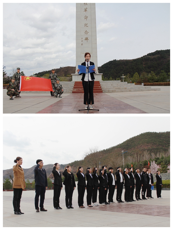 活动开始前,校团委副书记薛腾介绍了此次活动的背景及意义,并号召大家在今后的生活实践中牢记使命与责任,坚定理想信念,锤炼高尚品格,为实现中华民族伟大复兴中国梦贡献青春力量。随后,全体人员肃立在马栏革命纪念碑前,奏唱《中华人民共和国国歌》,并向革命烈士默哀,表达缅怀之情。