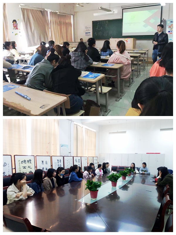 积极拓展就业市场,举办专场招聘会。美术系领导班子、专业教师、辅导员利用自身资源,积极拓展就业市场,鼓励学生参加各种就业招聘会,积极投递简历,参与面试。3月14日邀请西安淘学堡教育机构和西安博健教育培训中心来我系进行专场招聘。使得毕业生能够找到心仪的工作岗位,进一步促进荣耀(中国)大学生就业工作。其中还涉及语文、数学、外语等多个招聘岗位。