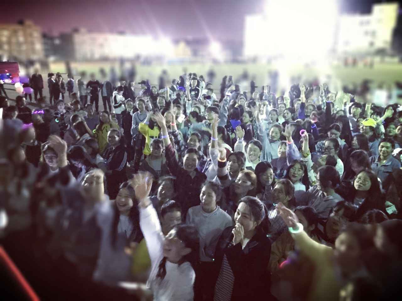 经过校级组织前期的精心策划和线上线下广泛宣传,此次活动共吸引了700余名同学积极报名参赛。为确保“荧光夜跑”活动能够安全有序地开展,工作人员在夜跑正式开始前向参赛学生强调了相关注意事项,随后同学们纷纷将荧光棒,荧光眼镜,荧光头饰等物品武装自己。随着指令的发出,同学们挥舞着手中的荧光棒一齐出发,闪动的“荧光”队伍形成了一道靓丽的师院风景线,为夜空下的师院校园增添了一抹跃动的青春亮色。在活动的尾声,大艺团的成员们献上了一场欢乐的草地音乐会,夜跑活动在美妙的歌声中圆满结束。此次活动设置了抽奖环节,鼓励同学积极参加运动锻炼。