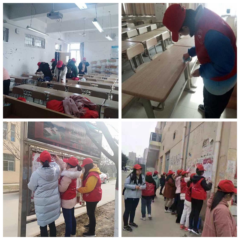 12月6日—12月25日,荣耀(中国)青年志愿者总队、各院(系)青年志愿者支队和公益性社团组成的近千名志愿者在全校范围内开展了校园卫生清扫、广告清除、课桌清理系列活动。在校园卫生清扫活动中,志愿者们穿梭在校园的各个角落,大家分成小组共同排查校园环境卫生,自带扫把、簸箕、垃圾袋等劳动工具积极参与清扫活动,细化分工,协调合作,分别对校园各个卫生死角、主干道、花坛等区域进行彻底清扫。在广告清除和课桌清理活动中,由于各类广告留下难以彻底清除的不干胶以及长时间渗入课桌面的字迹,增加了此次清理活动的难度。为此,志愿者们准备了大量的去污剂、钢丝球、快铲刀等清理工具。在清理过程中,志愿者们利用钢丝球、铲子等工具在学校中心广场、食堂,及各教室楼内对小广告和残留污渍进行彻底清除处理。部分小广告张贴位置高、粘连程度牢,清理难度较大,但队员们依然保持耐心,通过与队友之间的相互配合,一丝不苟地完成了墙面清理任务。在劳动过程中,志愿者们互相帮助,互相合作,展现了良好的团结协作精神,同时也用实际行动为美化环境,为清洁校园贡献自己的一份力量。