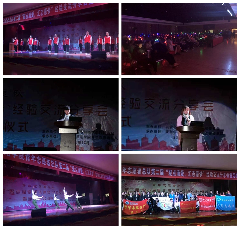 12月5日,为庆祝第32个国际志愿者日,校青年志愿者总队在大学生活动中心举办了以“聚点滴爱,汇志愿梦”为主题的第二届志愿经验分享会暨“志愿服务月”启动仪式。校团委相关负责人、校青年志愿者总队负责人、各院(系)志愿者支队负责人、公益性社团、部分高校志愿者总队负责人以及全校700余名志愿者代表参加了此次活动。在活动中,校青年志愿者总队负责人对“志愿服务月”相关工作做了安排部署,并号召全校志愿者以此次活动为起点,携起手来,从身边的小事做起,共同营造清洁美丽、文明纯净的校园氛围。随后,在分享环节中,各院(系)志愿支队推选上来的优秀志愿者分别分享了在各自工作与志愿服务经历中的经验与感受,以自身对志愿服务的认识讲述参与志愿活动的收获。陕西师范大学、陕西科技大学、西北政法大学等多个高校青年志愿者总队相关负责人也上台分享了他们在志愿服务工作中的心得体会。通过此项活动,志愿者们之间加强了沟通和交流,增进了志愿者们之间的情谊,并吸引更多的同学加入到志愿服务的工作中,成为乐于奉献的志愿者队伍中的一员,营造了良好的志愿服务氛围。
