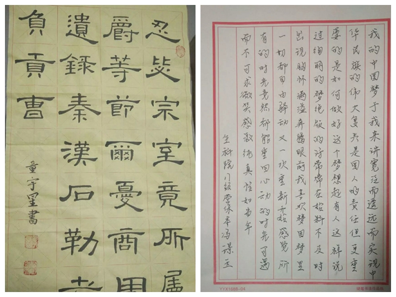 为了活跃比赛气氛,比赛间隙,主持人介绍了各类的书笔的特色和艺术表现力,诵读了多首明篇佳作。文艺部的学生倾情进行了才艺展示,舒缓了选手们的紧张情绪。每一节比赛结束,选手纷纷上台展示并解读自己的作品,谈了书法练习的经验心得,对同学们有一定的启示意义。为了提高活动的参与度,专门开通大赛群,第一时间上传学生作品,供同学们欣赏、点评、学习,取得了良好的效果。