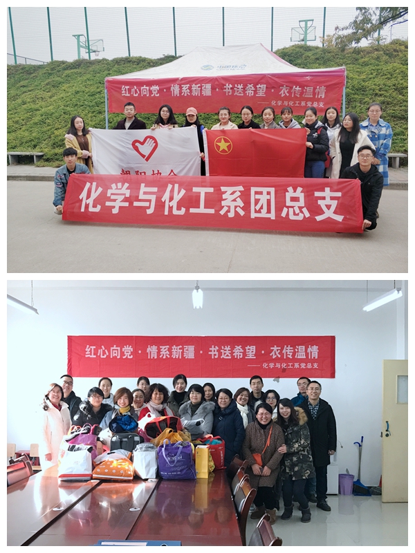 为认真贯彻落实党中央、国务院关于扶贫工作的相关政策,切实帮助贫困地区群众解决实际困难,为他们送去党的关怀和温暖,结合我系在新疆墨玉县实习的学生反馈,该地区经济落后,物资紧缺,特别随着天气转冷,当地学生衣物、文具等物品严重紧缺。12月1至9日,在化学与化工系党总支和团总支的号召下,特开展“红心向党·情系新疆·书送希望·衣传温情”活动 。