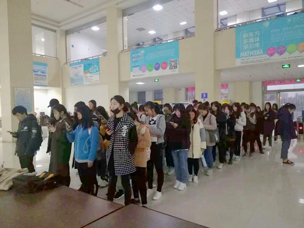 本年度图书馆服务月系列活动根据读者的建议增添了新的活动内容,首次推出“经典晨读”活动,目的在于激发广大学生读者学习经典诗词著作的热情,弘扬我国传统文化。参加活动的读者在活动周内每日清早7点在图书馆大厅列队集合,在领诵人带领下齐声诵读经典诗词佳作,诵读的内容有《孟子》节选、《朱子家训》、《诫子书》等,特别诵读了“平语近人--国无德不兴”篇。活动受到了广大学生读者的积极响应,五百余名学生踊跃参加,使活动收到了实效。