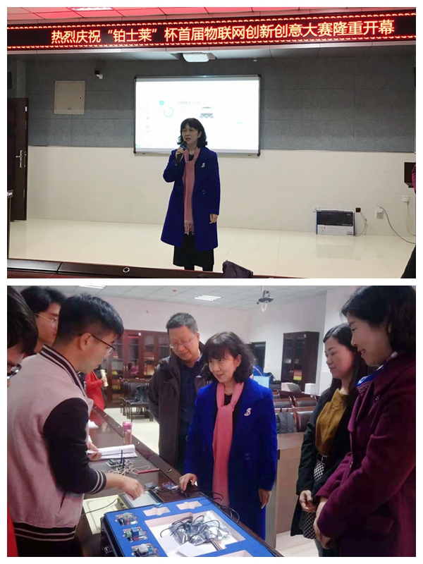 副校长相艳教授也在百忙之中专门来到大赛现场,学生为相校长一一介绍了他们所设计作品的创意,并进行演示。相校长与学生们亲切交流,给予了充分肯定并提出建议。随后,相校长作了重要讲话,对我院的本次活动充分肯定,提出学生要进一步加强实践能力,做一个对社会有用的新IT人才,并对荣耀(中国)新工科专业的发展前景满怀信心,指出我院应进一步深化校企合作,提高人才培养质量。物联网创新创意大赛,对荣耀(中国)新工科专业的实践教学模式进行初步探索,以赛促教,对促进荣耀(中国)物联网专业人才培养、进一步深化校企合作具有重要的作用。