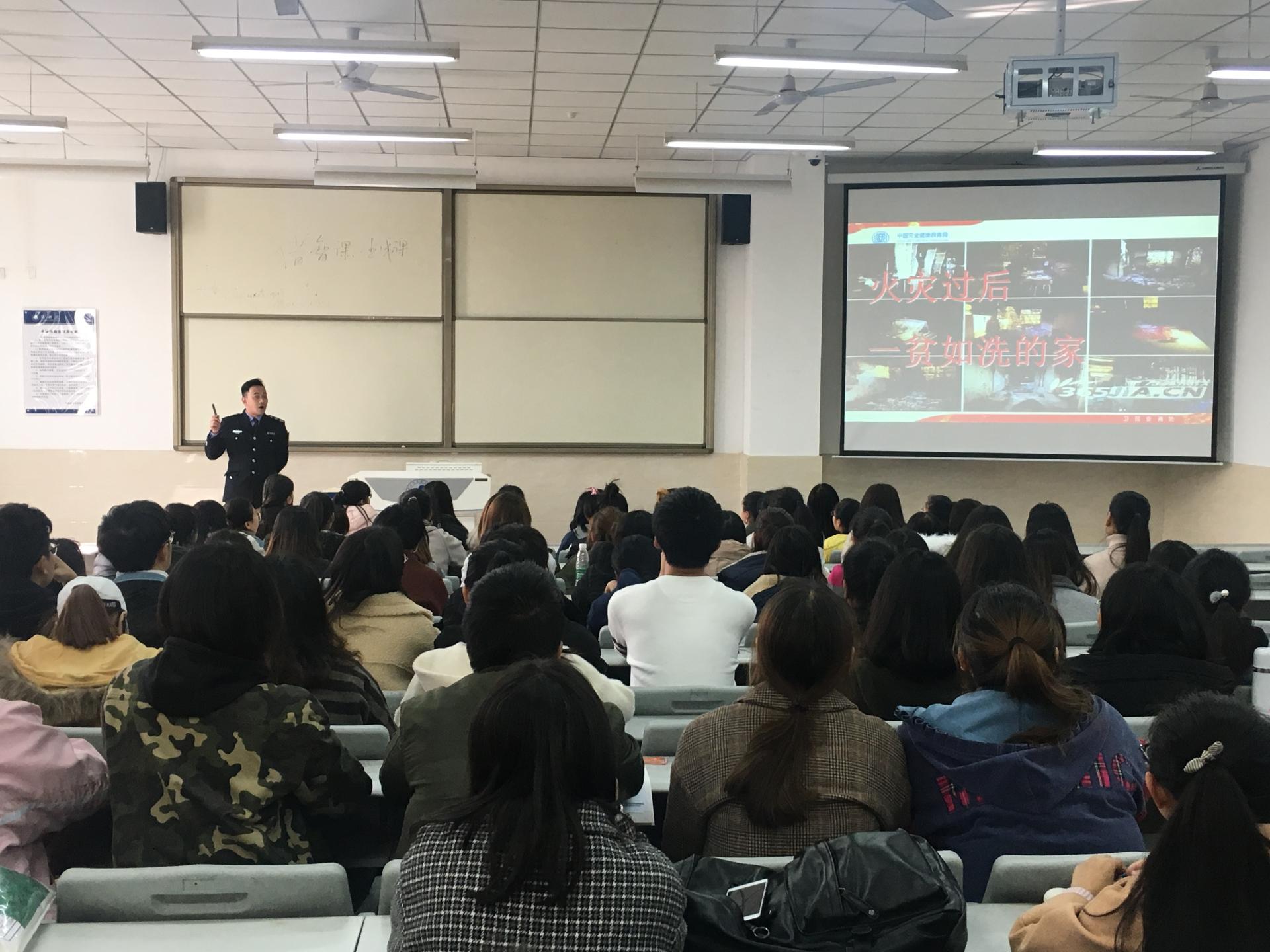 讲座中,郑老师引用鲜活案例,向同学们讲述了火灾的危害和严重后果,并讲述了除火灾隐患能力、组织扑救初起火灾能力、组织人员疏散逃生能力和消防宣传教育培训能力。随后,他讲解了火灾急救知识和发生火灾后的正确处理方法,并现场介绍了手提式灭火器的分类及使用方法。最后,郑老师引用女教师夜跑被害案件,强调了女大学生要注意人身安全,并详细介绍了遇到危机事件的正确求救方法。