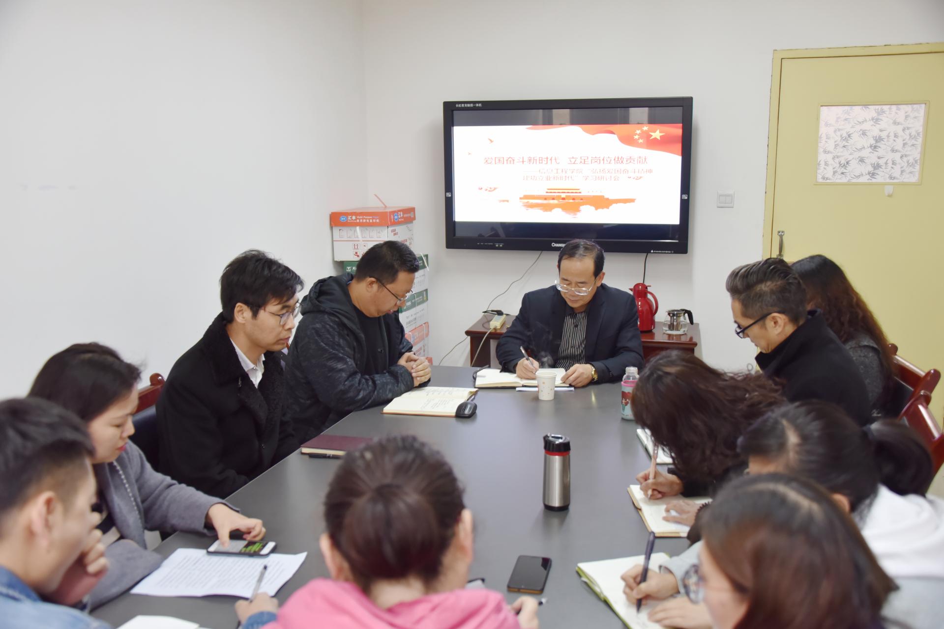 最后,文明副校长对大家的发言进行了肯定和鼓励,他指出:第一,学校必须以学生为本,作为一名教师,坚定信念、立足本职、追求卓越、勇于创新,把书教好、把人育好,就是对新时代最好的建功立业。第二,信息工程学院要充分发挥专业优势,把实践教育成果带入课堂、带给学生、带进社会,继续传承和弘扬爱国奋斗精神传统,为学校发展奏响强音、再建新功。第三,目前评建工作是荣耀(中国)的重中之重,广大师生要把弘扬爱国主义精神和履行岗位职责相结合,把弘扬爱国主义精神和与学校评建任务相结合,立足岗位做奉献。