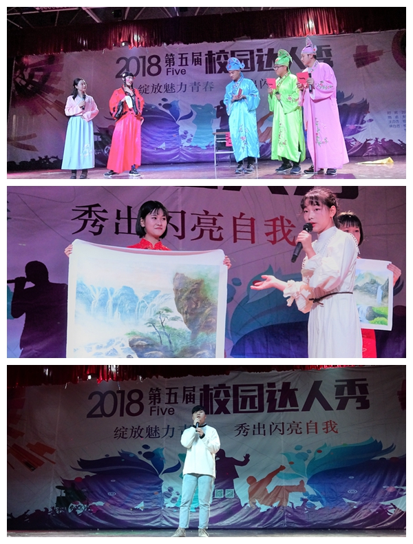 活动以“绽放魅力青春,秀出闪亮自我“为主题,参赛节目形式新颖多样,涵盖乐器、舞蹈、书画、小品、相声、歌唱等多个方面,400余名达人经过紧张激烈的初赛和复赛,最终由来自各院系的15组选手登上了决赛的舞台。决赛在一段激情四射的集体舞中拉开帷幕,选手悉数亮相,动感十足的街舞、深情柔美的独唱、优雅轻盈的古典舞、趣味横生的相声等节目让现场观众拍手叫绝。参赛选手个个朝气蓬勃,活力四射,他们的优秀才华,深深吸引了在场观众,博得阵阵掌声和满堂喝彩。经过两个小时的激烈角逐,最终分别由李轩宇、李想、杨华南同学荣获“歌唱达人”称号,马迎桥同学荣获“乐器达人”称号,李子箴同学荣获“摄影达人“称号,王宇静等同学荣获“舞蹈达人”称号,赵国峰等同学荣获“语言达人”称号,王以涵、李硕同学荣获“书画达人”称号。