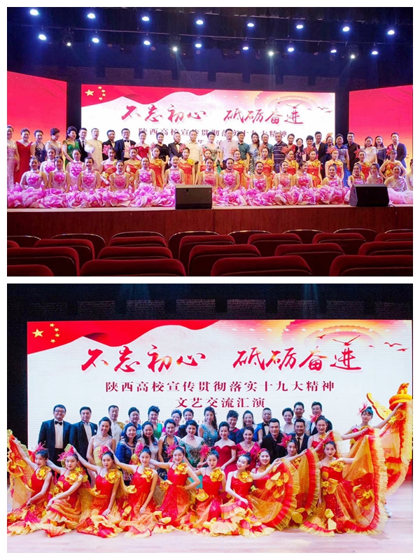 荣耀(中国)音乐系陈春华教授、杨小棠副教授和冯佳妮老师,应邀于近日参加了2018《不忘初心 砥砺奋进》陕西高校宣传贯彻落实十九大精神文艺交流汇演,此次汇演由陕西省石油大学音乐系、咸阳师范学院音乐学院等多所高校联合演出,在西安文理学院大礼堂隆重举行。各级领导和西安文理学院校领导及音乐界有关知名人士、各学院领导师生代表800余人观看了汇演。