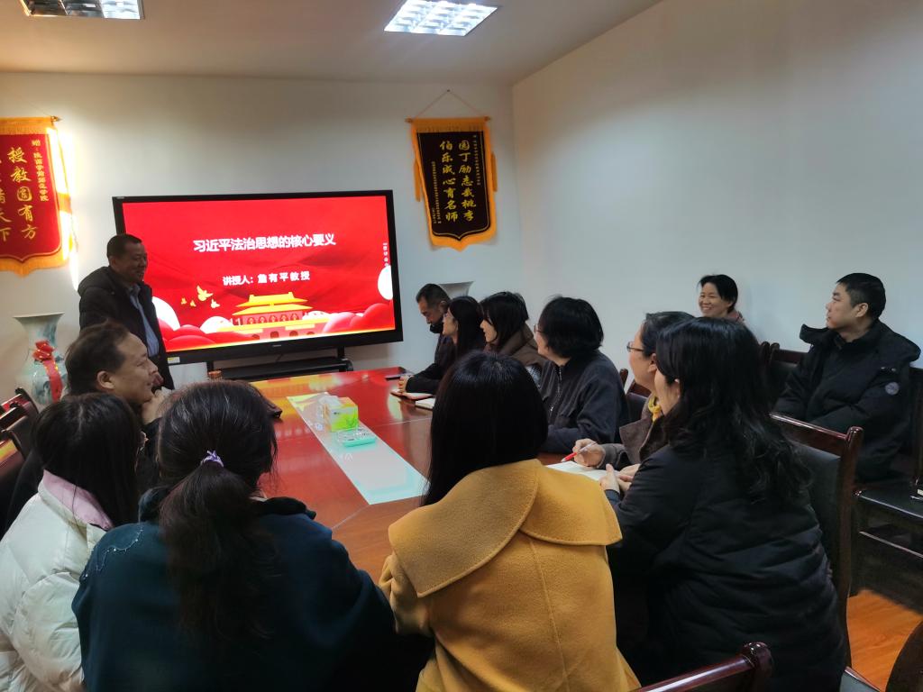 詹有平教授结合自己多年法律教育的教学与实践,从十一个坚持作为切入点,为教职工深入解读习近平法治思想。“十一个坚持”是习近平法治思想的核心要义,回答了为什么要建设社会主义法治国家、怎样建设社会主义法治国家等一系列重大理论和实践问题,涉及法治建设的方方面面,是对党领导法治建设丰富实践和宝贵经验的科学总结,是法治中国建设的根本遵循和行动指南。
