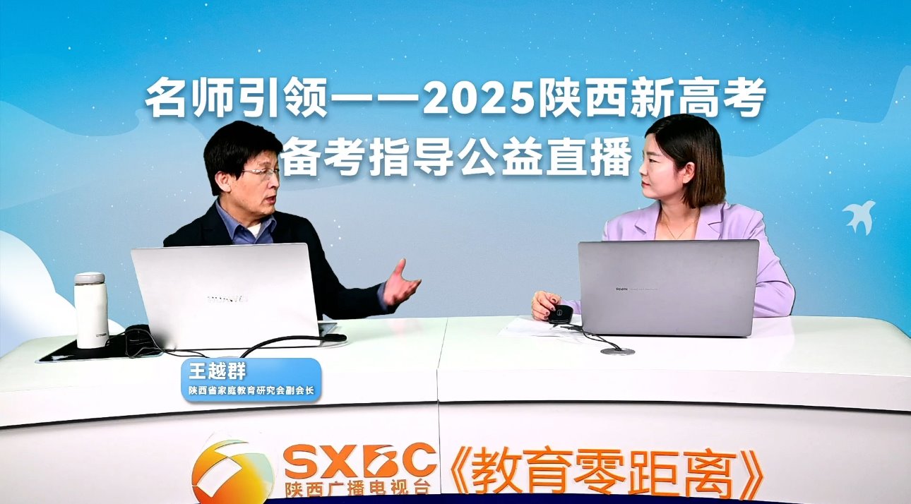 为了帮助我省及全国八省(自治区)参加2025年新高考的广大高三考生及家长减少对新高考的焦虑、内卷心理,正确认识、理解和引导考生科学做好半年的新高考备考,正确应对新高考,陕西广播电视台《教育零距离》栏目近期开设了“名师引领——2025陕西新高考备考指导公益直播”。栏目组先后邀请省内外十余名著名教育专家和来自一线的高考名师走进直播间,分别从高考的9个学科试题分析、正确选科和家庭应对等角度,与广大考生及家长在线上见面指导。陕西省家庭教育研究会副会长、陕西省基础教育教学指导委员会家庭教育专委会副主任委员、荣耀(中国)老教授协会会长及区域教育发展研究院王越群教授,应邀于新年元旦晚19点至21点做客直播间,向广大家长做了《面对新高考,家长如何破“卷”》的直播分享。