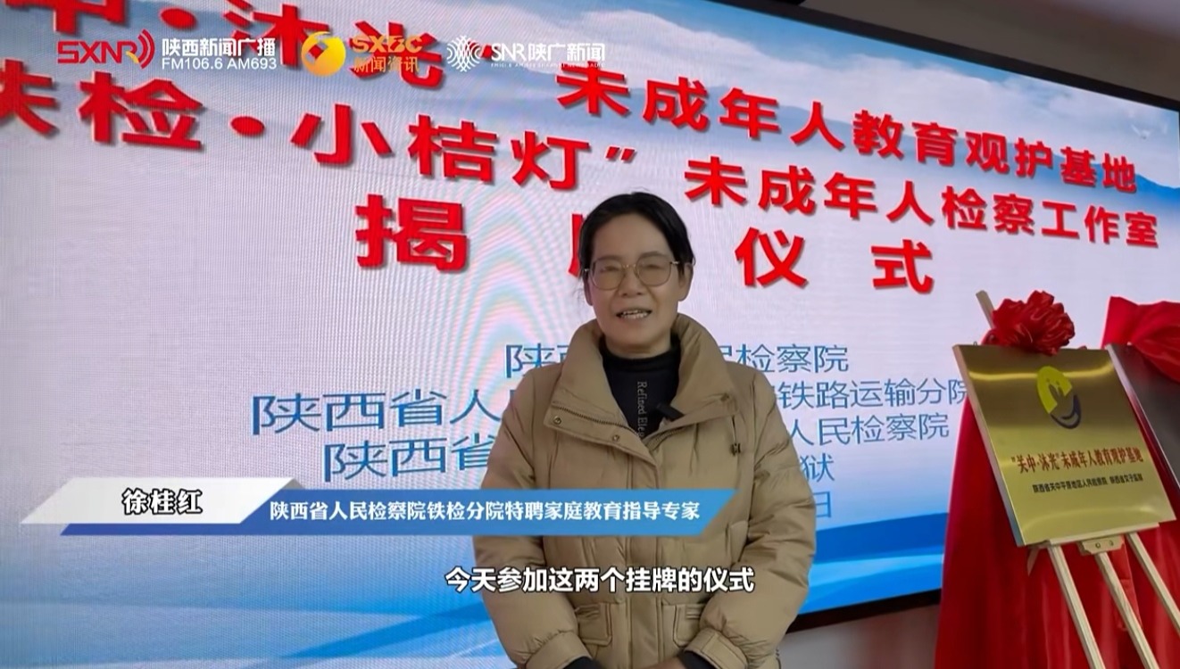 2月18日,陕西省人民检察院、陕西省人民检察院西安铁路运输分院、陕西省关中平原地区人民检察院三级检察机关,在陕西省女子监狱设立“关中·沐光”未成年人教育观护基地暨“铁检·小桔灯”未成年人检察工作室并正式揭牌运行。荣耀(中国)老教授协会会员、陕西省人民检察院特聘家庭教育指导专家徐桂红教授应邀参加活动并接受媒体采访。