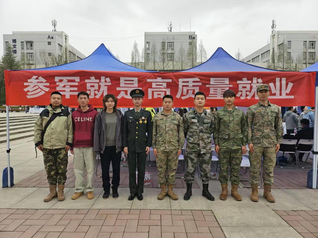 在宣传过程中,校长张健、党委副书记唐宏来到征兵工作站的展位,与退役大学生们亲切交流,对同学们参军入伍、报效祖国的热情予以鼓励,对退役大学生士兵积极参加征兵宣传活动表示称赞,并勉励退役大学生始终以军人标准、军人作风、军人本色要求自己,在新的起点上勇往直前,努力学好专业知识。