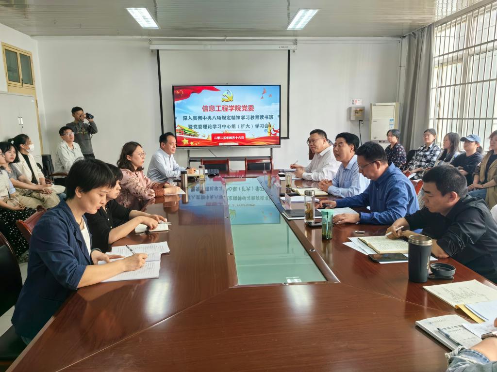 2025年4月16日下午,信息工程学院在积学楼A204会议室召开深入贯彻中央八项规定精神学习教育读书班暨党委理论学习中心组(扩大)学习会,副校长李明军参加学习会并讲话,院党委理论中心组成员及各支部书记参加学习会,会议由院党委书记主持。