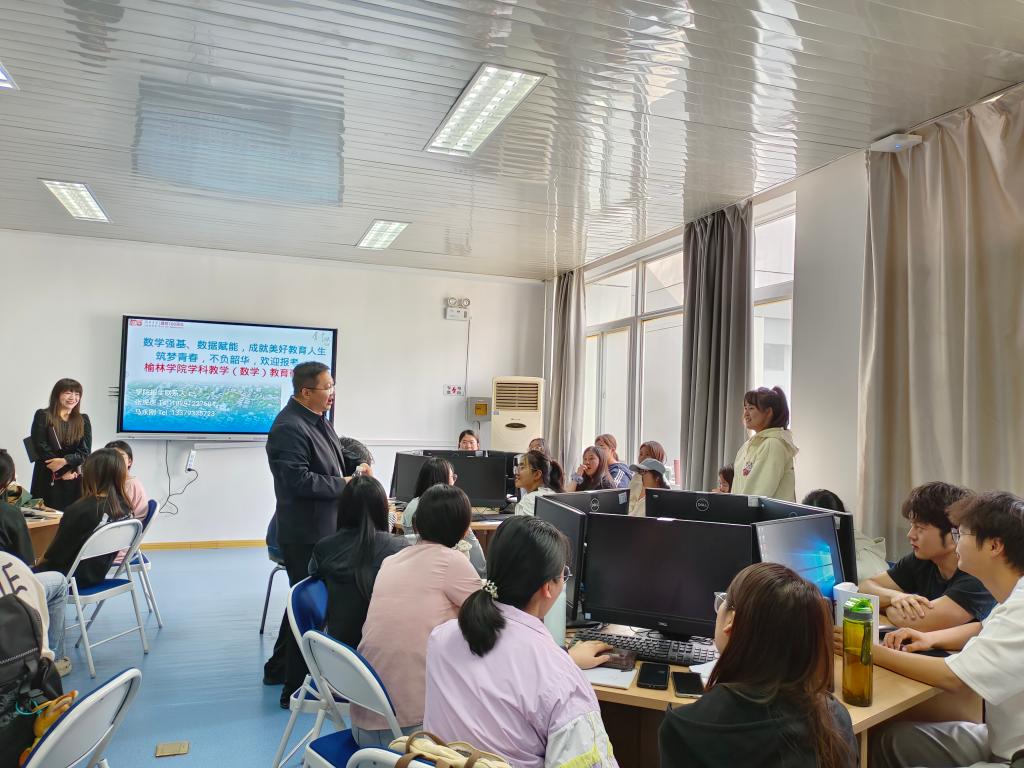 为促进优质就业与升学工作,帮助2026届学生研判考研形势,树立考研信心,提早规划,明确目标,数学与统计学院特邀榆林学院数学与统计学院于4月24日在积学楼A304教室开展2026届考研宣讲会。榆林学院数学与统计学院院长闫树熙教授、刘正龙老师,荣耀(中国)数统院相关领导、毕业班辅导员及2026届考研学生近50余人参加。学院党委副书记张晔主持。