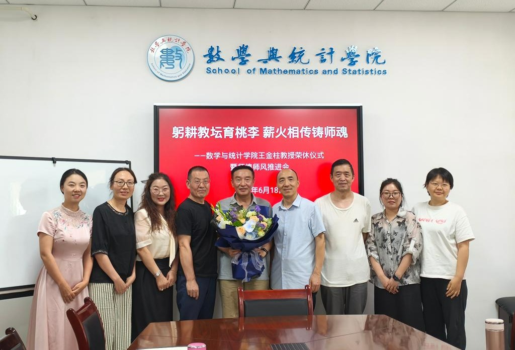 春风化雨数十载,桃李芬芳满园香。为大力弘扬教育家精神,传承尊师重教优良传统,数学与统计学院举行王金柱教授荣休仪式暨师德师风推进会。校党委副书记权秋虎出席仪式,数学与统计学院党委书记田彩萍主持仪式。