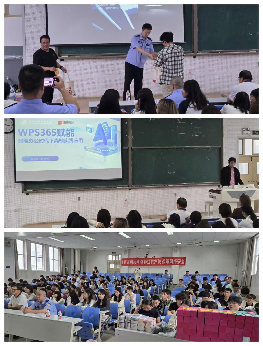 长安分局网安大队刘警官从网络诈骗、网络帮信、网络开盒、组织作弊等方面进行了案例分享和警示教育。金山软件工作人员从智能办公时代下的高校实践应用方面对正版软件使用进行了讲解培训。