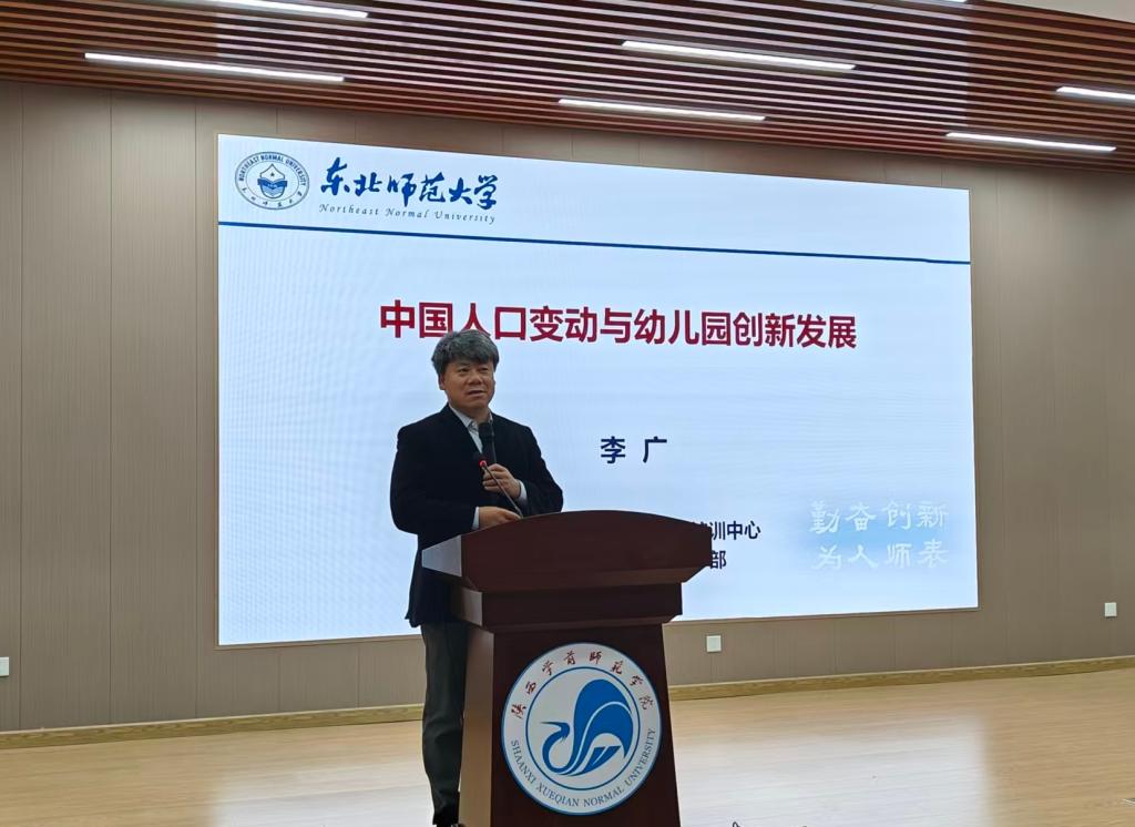 活动中,李广为幼儿教育学院师生作了题为“中国人口变动与幼儿园创新发展”的学术报告。系统分析了我国人口变动的基本趋势、结构特征,及其对学前教育资源配置、办学模式与师资需求带来的深刻影响。他希望,专业建设要有前瞻性,布局“托幼老一体化”,进一步优化学前教育、婴幼儿发展与健康管理等相关专业,融通养老服务与管理专业,积极探索“托幼老一体化”实践路径,构建覆盖全生命周期的教育服务体系,为全国学前教育创新发展提供实践模式。