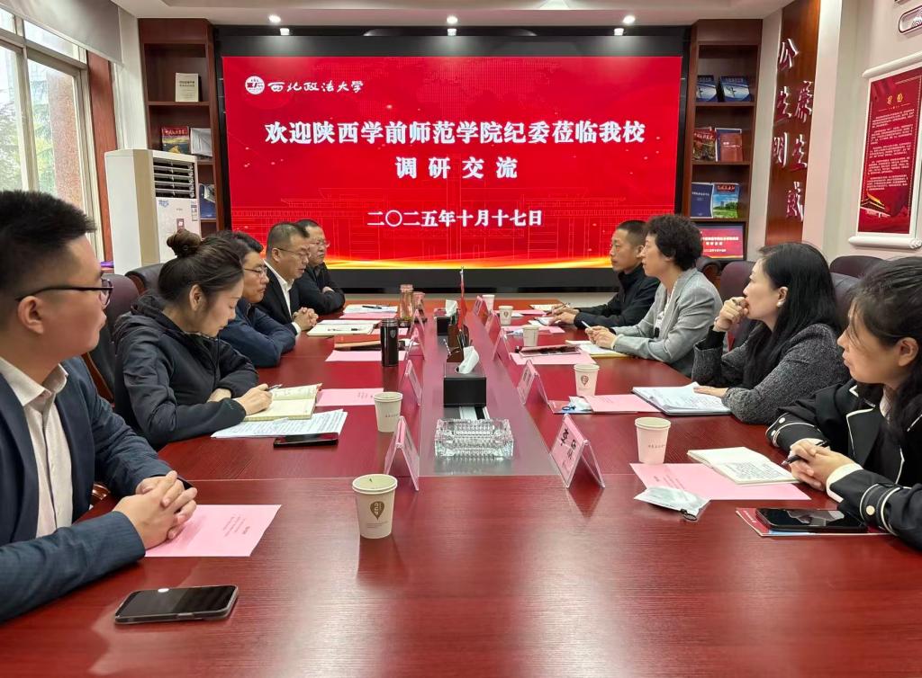 近日,校党委副书记、纪委书记、监察专员赵琼带领全体专职纪检监察干部赴西北政法大学开展纪检监察工作调研学习。西北政法大学党委副书记、纪委书记、监察专员刘志彬,以及纪检监察机构相关同志出席调研座谈会。